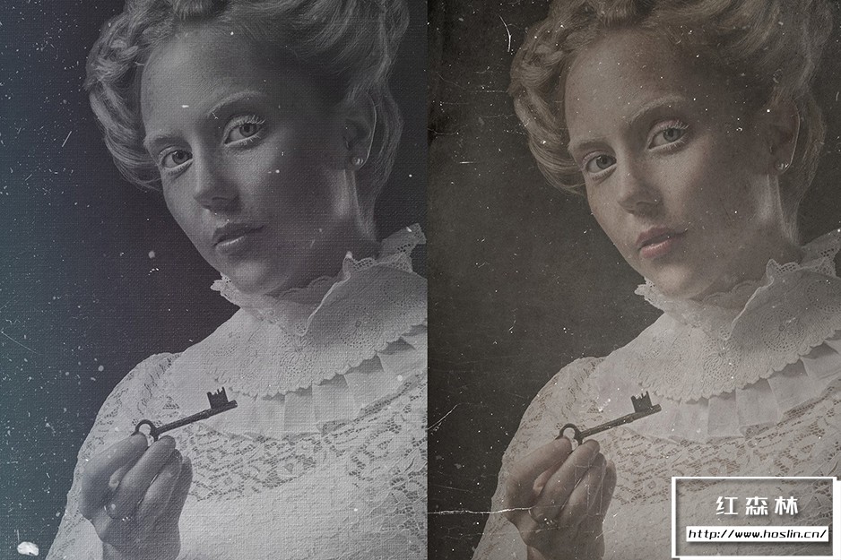 PS模板 Dust And Scratches Film Effect 您可以使用它为具有真实色彩失真,灰尘和划痕的照片添加复古外观。