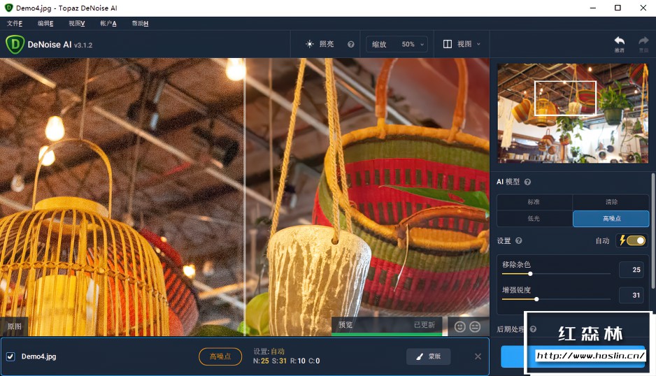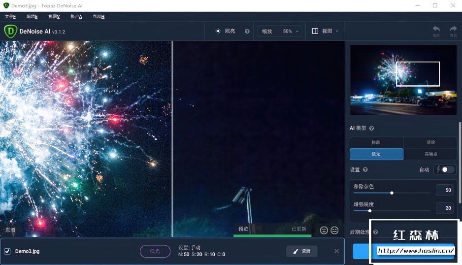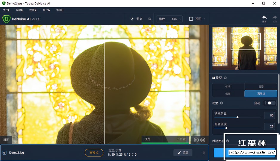 Topaz DeNoise AI v3.1.2 是一款由 TopazLabs 打造的智能磨皮降噪工具,使用首个AI驱动的降噪工具,可以消除噪点并恢复图像中的清晰细节。您可能会对获得的结果感到惊讶。由于数码相机拍出来的相片总会有一些噪点问题,特别是光线不是很好的环境更容易凸显,DeNoise AI可以帮助您创建像素完美的照片,极大的降噪效果就像镜头升级一样。当您拍摄快速动作镜头,夜间图像或任何其他需要高ISO的情况时,您将可以获得更高质量的结果。