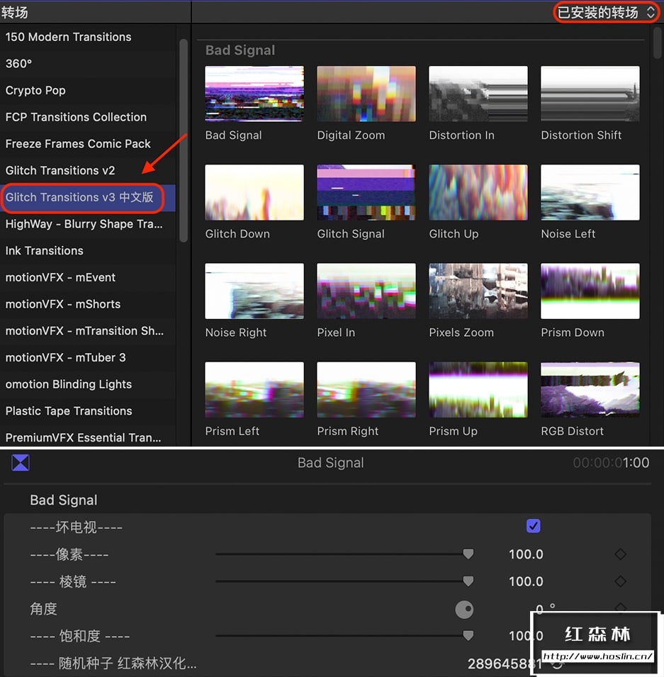 插件 Glitch Transitions v3包含共200种画面失真损坏色散毛刺信号故障干扰转场;你可能发现这套故障干扰转场跟其他同类插件不一样,效果更加的炫酷。有信号故障,位移置换,动态,都市风,蠕动,光学,分裂,VHS这八大类的干扰转场效果。支持标准的横屏,竖屏,方屏幕,4K项目,多种参数可控制。还提供了一个英文视频使用教程。
