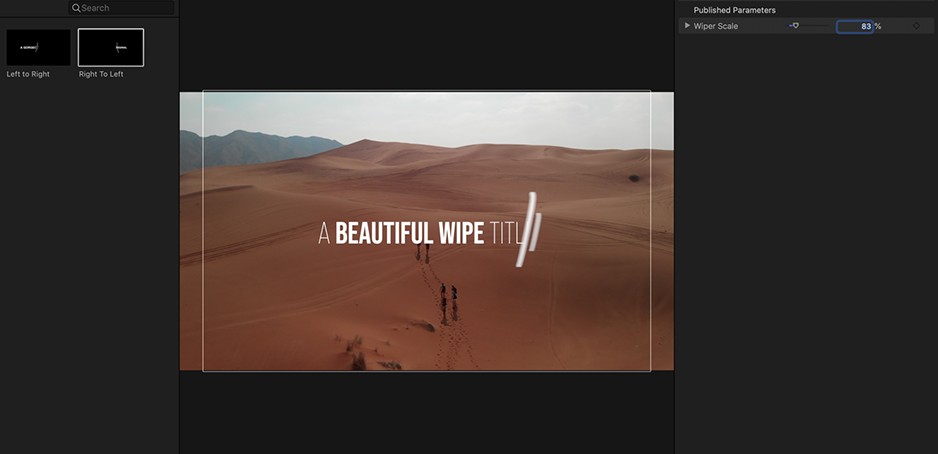 漂亮简单文字标题擦拭动画 Beautiful Wipe Title圆滑时尚的标题,以手绘斜线擦入和擦出文本。共两个效果,从左到右擦拭标题和从右到左擦拭标题,支持中文输入。