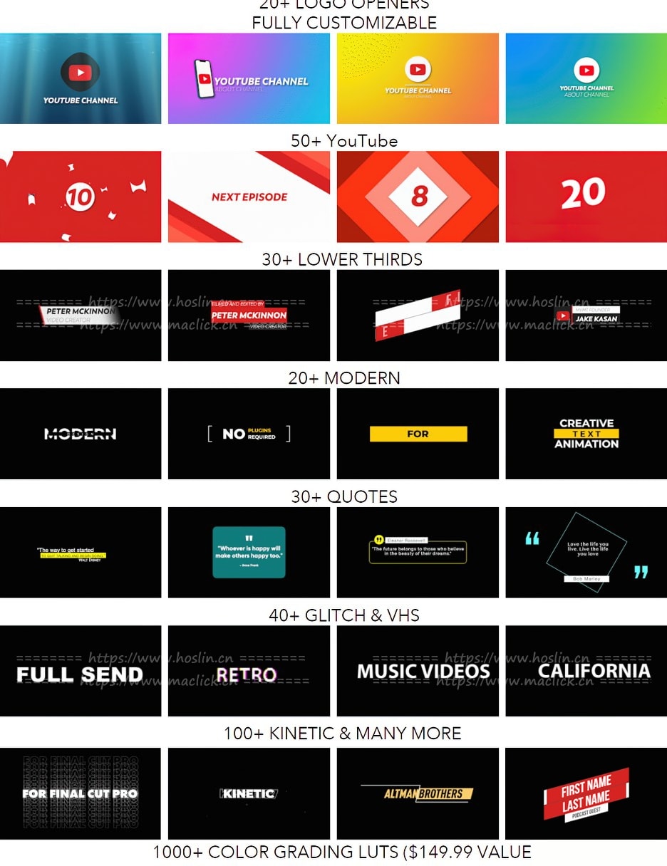 - 200多个文字标题FCPX插件(FCPX 10.3或更高)