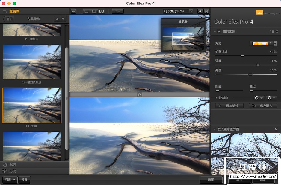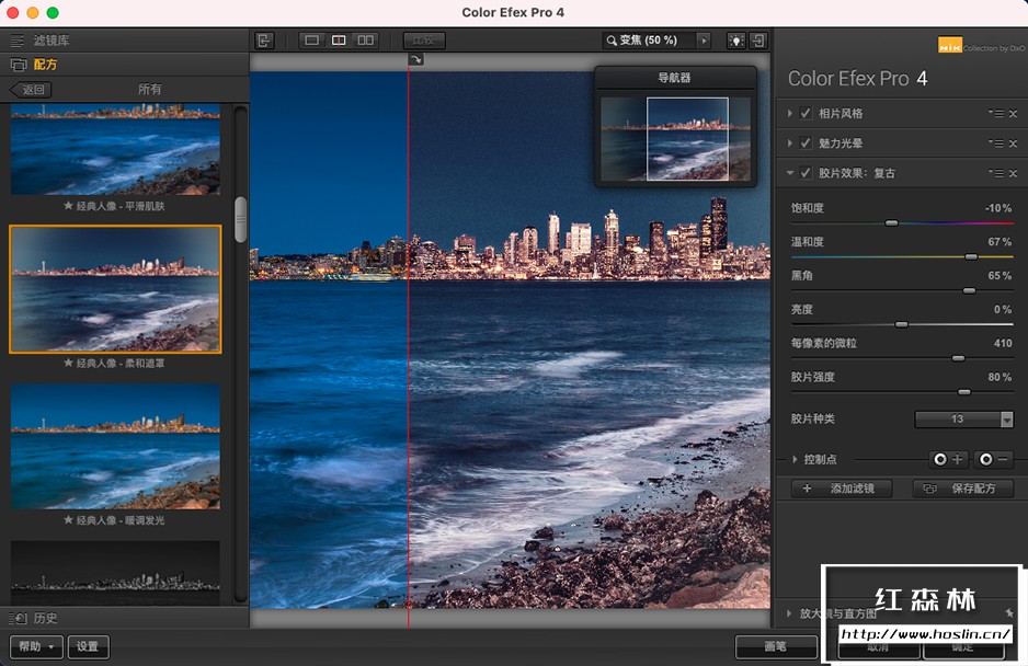 Nik Software Color Efex Pro 4中文版是一款专业的Photoshop调色滤镜。Nik Software Color Efex Pro(专业版)包含70多个不同效果的调色滤镜,Nik Software Color Efex 使用简单,只有点点鼠标,就可以轻松把你的图片处理成非常漂亮的效果。在此,个人强烈推荐这个非常强大的PS调色滤镜!如果你能把这个滤镜玩透,就可以把你的照片处理出类似专业摄影工作室的效果了!