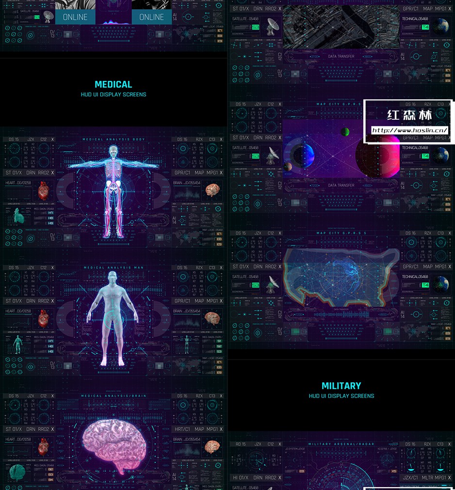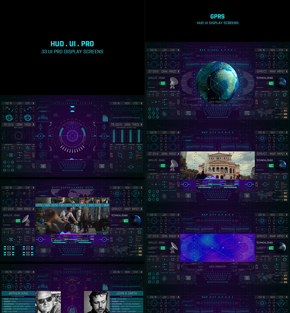 受《复仇者联盟:无限战争》的启发。自豪地展示出HUD UI PRO Pack,这是迄今为止最好的HUD项目之一,具有有效的可用性和最新的动画技术。它具有33个Pro HUD显示屏和450多个元素。每个显示屏的中央都有一个主要的Hero HUD设计,围绕它构建和开发了未来派的HUD资产,以显示界面的各种复杂功能。它具有7个类别的电信,医疗,军事,GPRS,轮船驾驶舱和机器。HUD UI PRO Pack是经过专业设计和组织的,所有主屏幕和资产元素都被分组到文件夹中,因此找到您想要的东西并将您的高质量专业HUD设计放在一起并不容易。使用After Effects形状图层创建的基于矢量的元素超级易于编辑和调整大小。