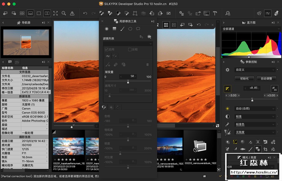 Silkypix Developer Studio Pro是解RAW档软件Silkypix系列中最高阶的版本,专为需大量处理RAW档的摄影师及影像专业人士所设计。Silkypix Developer Studio Pro可将RAW档有效率地转换成高品质的影像。除了曝光补正、批次显像、旋转、裁切及白平衡等基本功能外,也具备遮光、去除脏点、数码移轴、highlight控制、伪色管理、精密色彩微调、镜头收差补正等进阶微调选项。同时Silkypix Developer Studio Pro是套简单易用的软件,透过直觉操作即可让您轻松拥有超高品质的影像。
