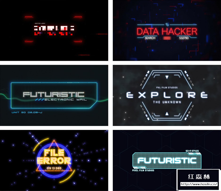 输入您自己的文本:ProIntro Sci-Fi 允许您用自己的文本替换预设文本。更改文本很容易。只需选择当前文本。删除它。然后,输入您的新文本。您可以更改颜色、字体等。