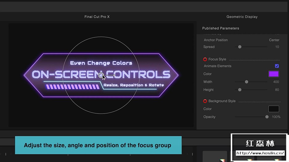 调整位置、旋转、比例和颜色:ProIntro Sci-Fi 包括屏幕控制,因此用户可以绝对轻松地重新定位、调整大小和旋转他们喜欢的标题。只需移动冰球重新定位,拨盘旋转并调整环以调整大小。只需使用选择器选择您喜欢的颜色,即可自定义任何元素的颜色。ProIntro Sci-Fi 可让用户自定义预设至完美。