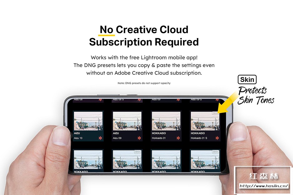 无需订阅 Creative Cloud:您将获得原生和 DNG 移动预设!即使没有订阅,您也可以使用 DNG 预设。