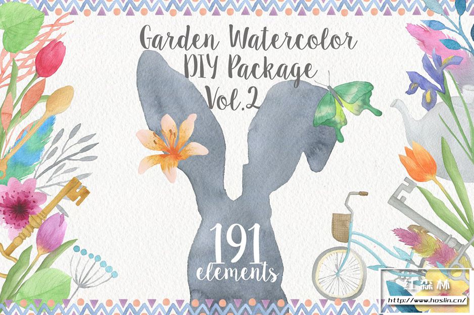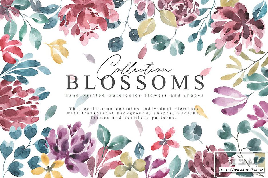 - 水彩元素 [每个水彩元素都存储在具有透明背景的单独 PNG 文件中];