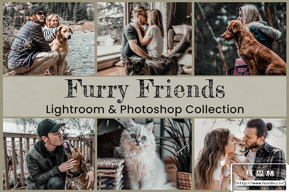 15 个毛茸茸的朋友 Lightroom 预设桌面 Lightroom 移动预设 Photoshop 动作 与ACR 预设,宠物摄影狗猫照片调色极佳工具。