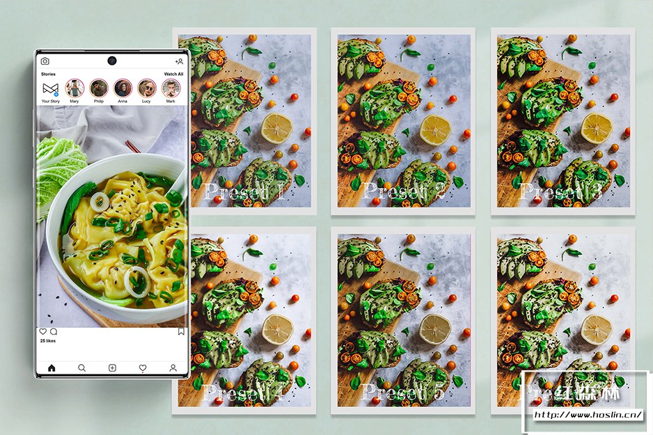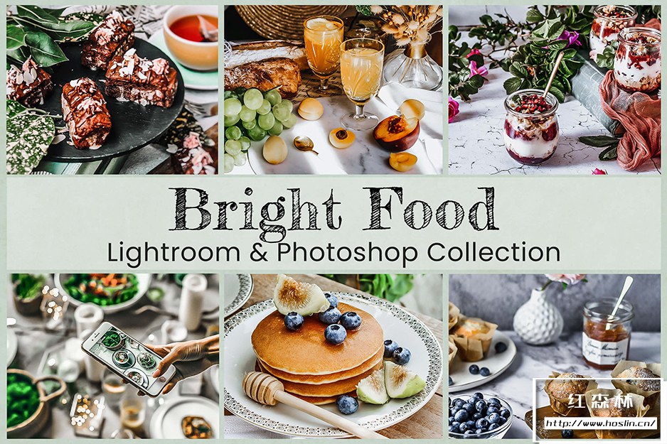 关于产品:6 个明亮通透淡雅美食摄影食物照片预设 Lightroom 预设和 Lightroom 移动预设 Photoshop 动作 及ACR 预设,INS风鲜艳的色彩校正,看起来健康且充满食欲。