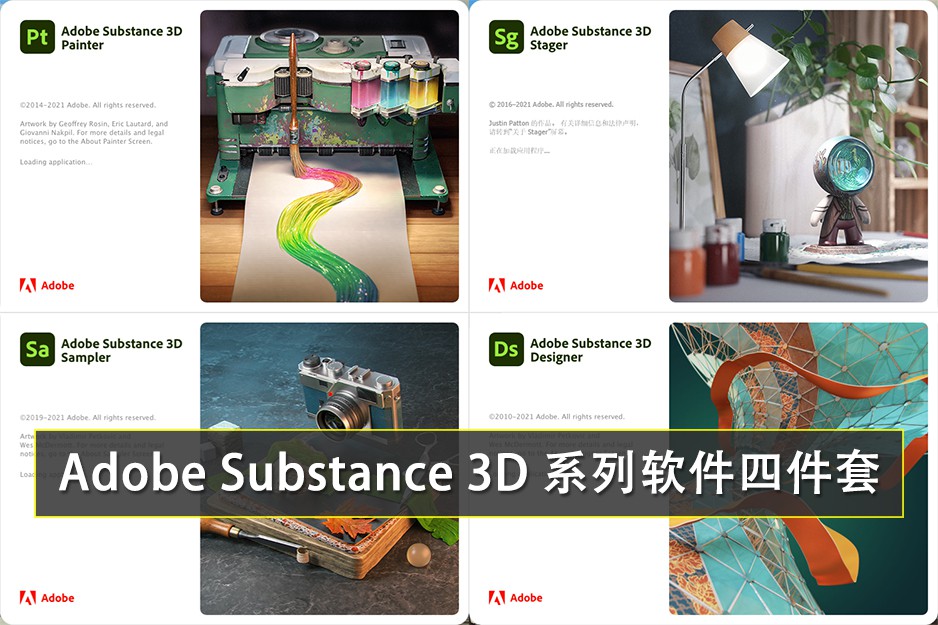 Adobe 公司在2019年收购了软件公司 Allegorithmic,而Adobe Substance 3D就是由 Allegorithmic旗下产品Substance套件进化而来。最新发布的 Substance 3D 系列应用软件在旧版套件的基础上有了许多提升,其中包括四款专业级创意软件,还包含参数可调节的 3D 资产库。