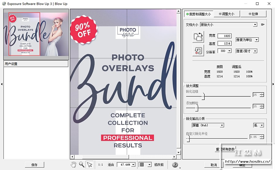 - Alien Skin Blow Up 3具有支持批处理和不需要PS图象处理软件的紧密的LCD集成。