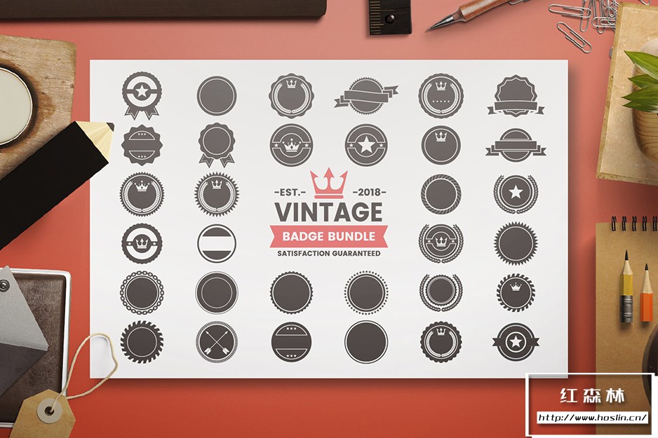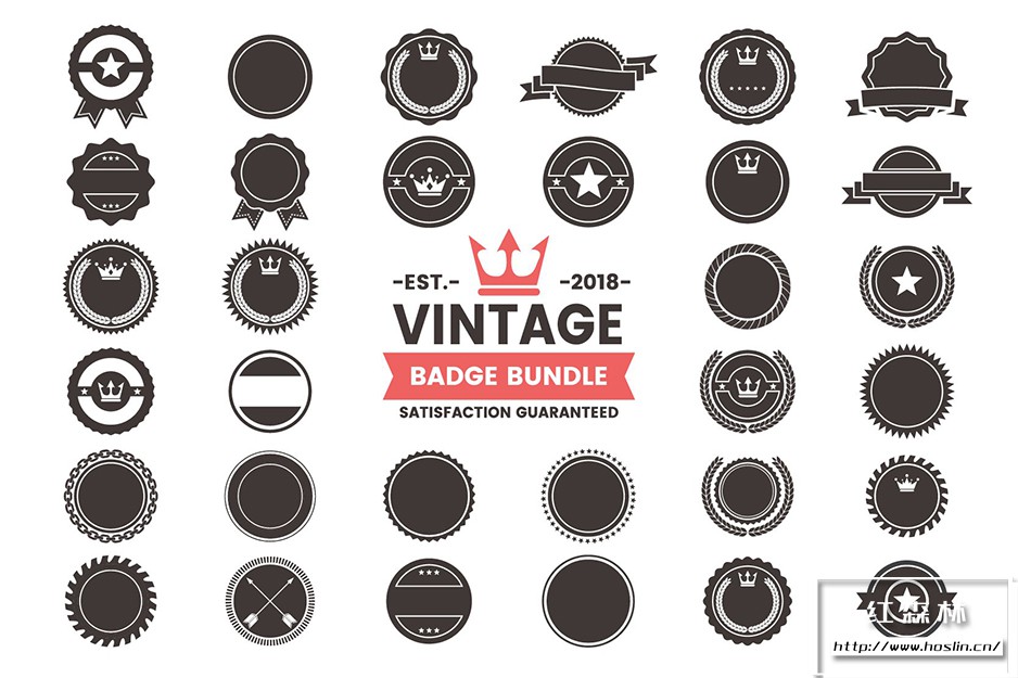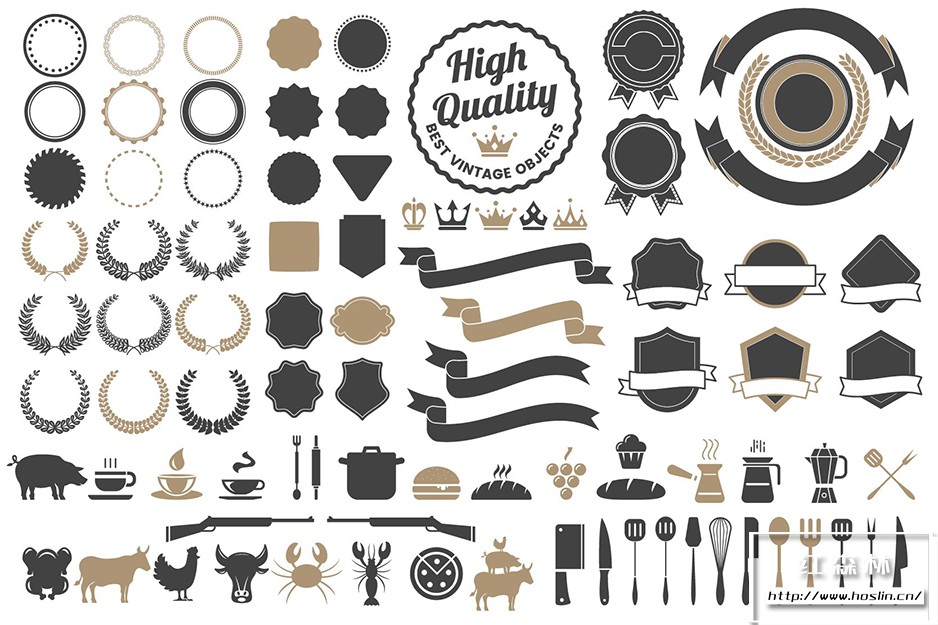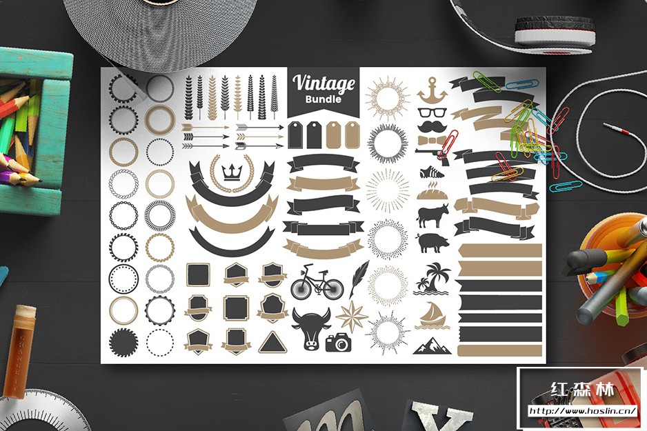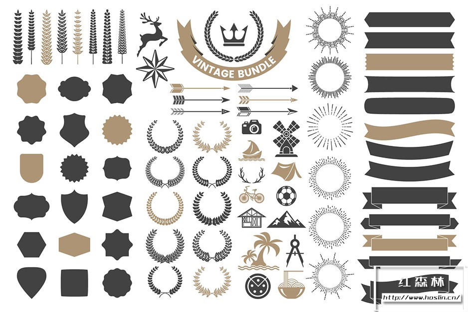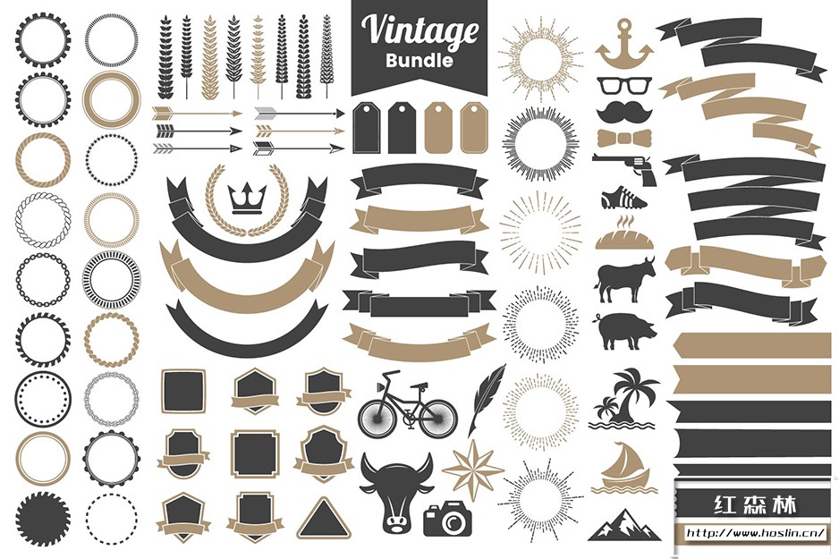 关于产品:395 Vintage Generator Toolkit,这是我的 VINTAGE BADGE 和 RIBBON 元素的集合,包括了很多复古风格的徽章标志和绶带元素,包含多种不同的风格。