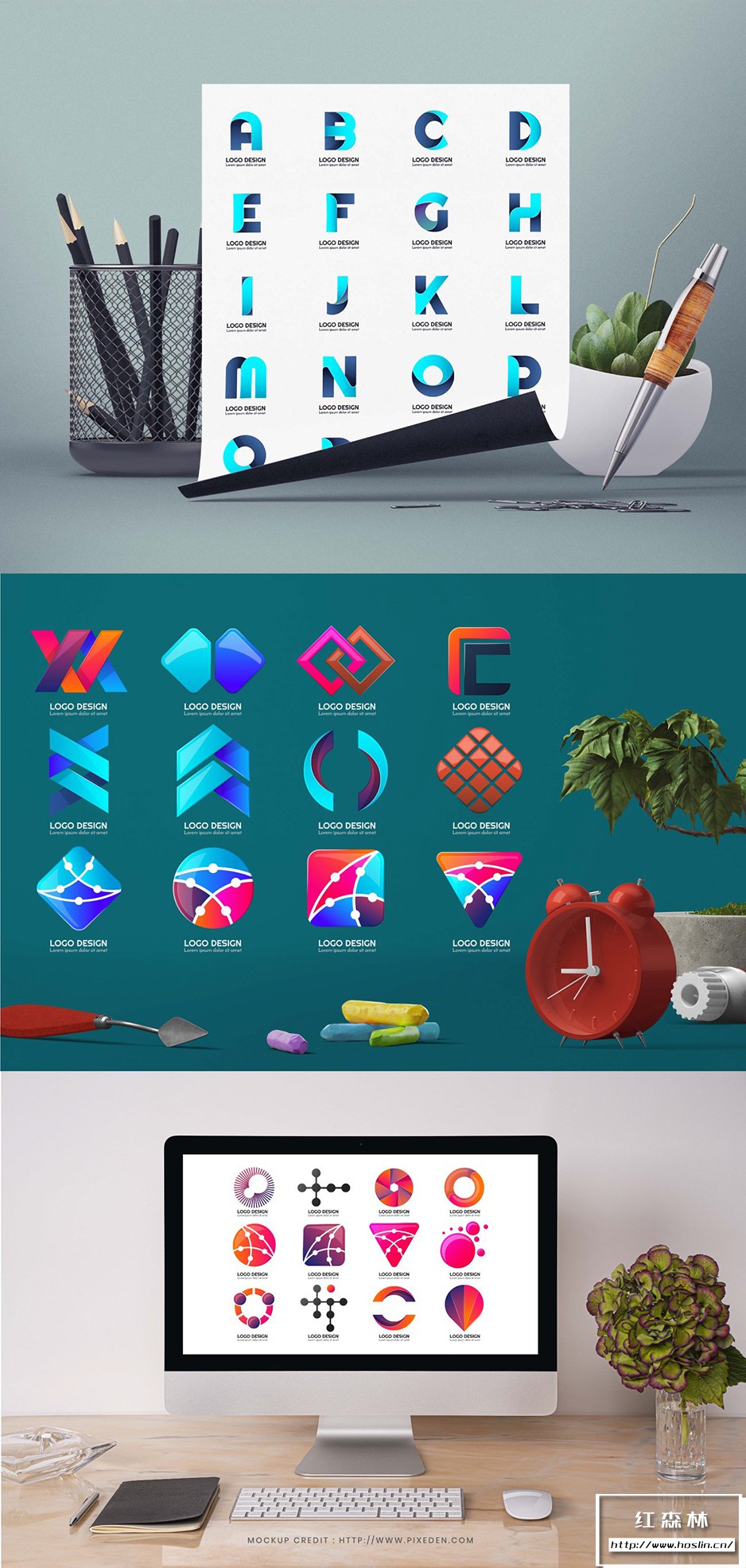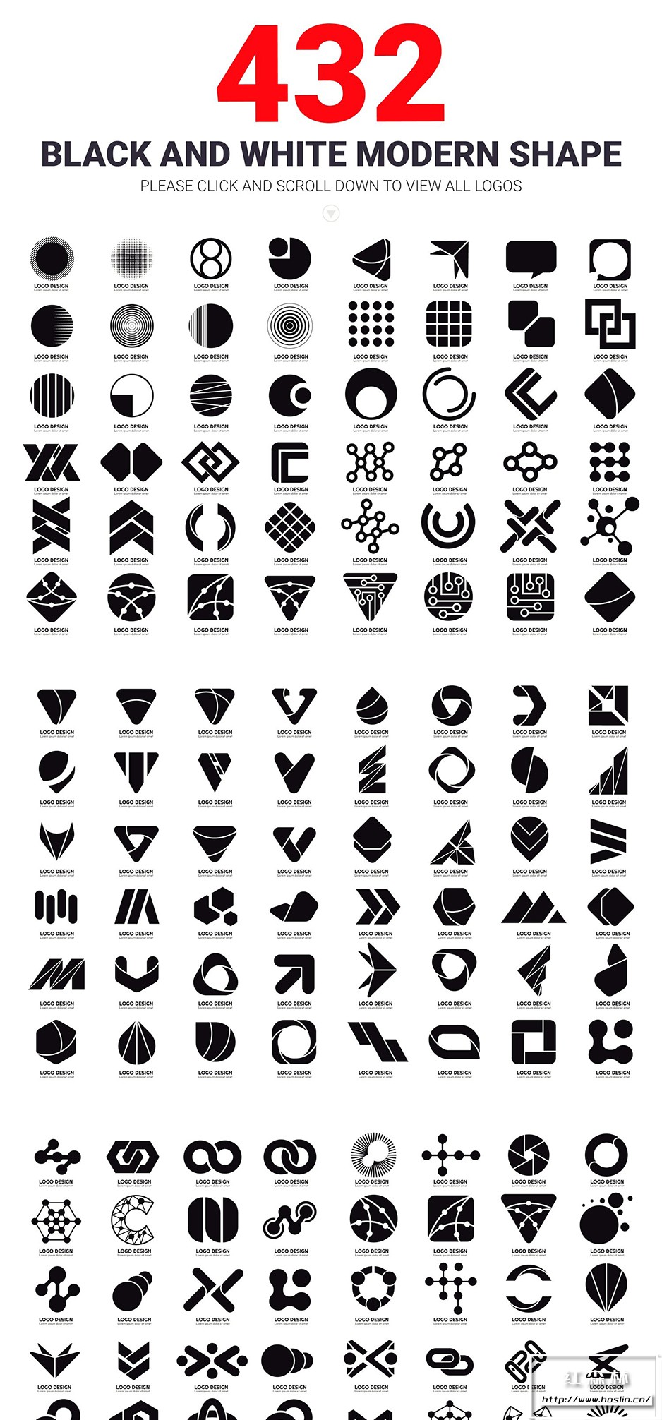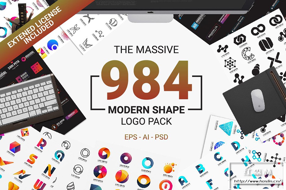 关于产品:984 Modern Logo Shape,这是我的现代标志元素的集合,包括许多不同风格的现代标志元素。