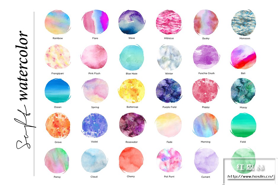 - 30 种柔和的水彩纹理:简单、梦幻般的柔软水彩纹理,非常适合背景!