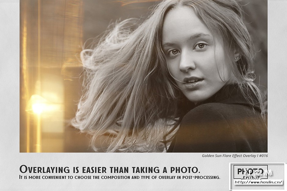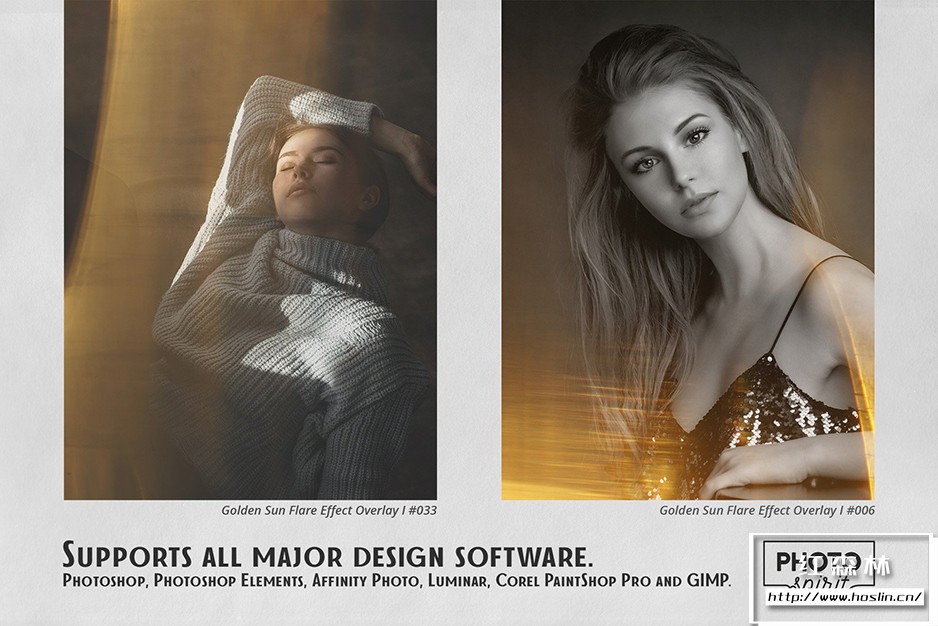 适合业余爱好者和专业人士。彩色和黑白照片效果极佳。为方便起见,添加了用于在屏幕模式中选择和覆盖叠加层的操作。这将适用于 Photoshop 和 Photoshop Elements。Golden Sun Flare 叠加可用于任何支持屏幕模式下的图层叠加的图形编辑器。