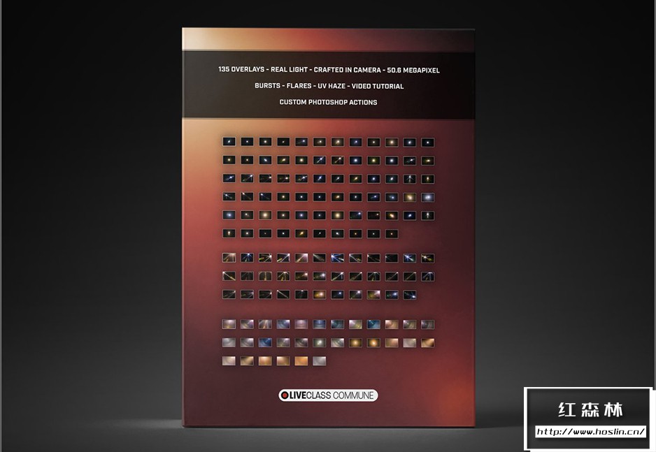 世界上最有效的真实灯光叠加和 Photoshop 动作包。包括135 个曝光、耀斑、炫光、漏光和 UV紫外线雾霾叠加,使用真实光源手工制作并在相机中拍摄。分辨率 50.6 兆像素文件 (8688×5792 @300dpi) 。