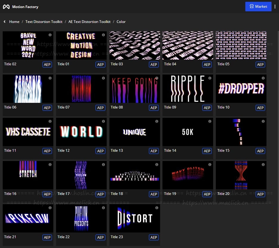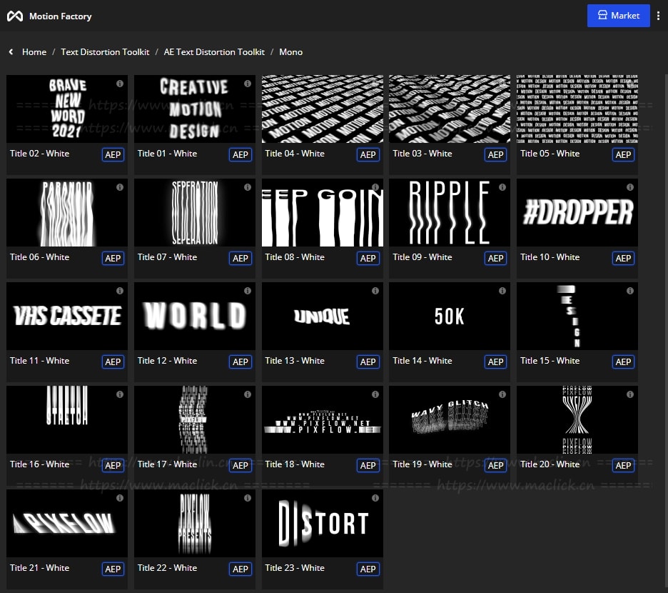 一款功能强大的产品适用于After Effects 和 Premiere Pro 的文本失真工具包,可帮助您为任何项目创建时尚的抽象排版。这些液体变形效果正在接管社交媒体,现在您可以在几分钟内创建自己的效果。您可以将这些文本失真效果用于社交媒体帖子、视频网站、视频音乐标题、广告视频、GIF、电子邮件营销等等,无论您替换什么占位符,您总能获得漂亮的效果。