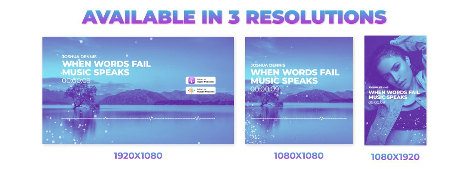 包含三种分辨率模板:1920×1080(宽屏)、1080×1080(方形)、1080×1920(竖屏)。