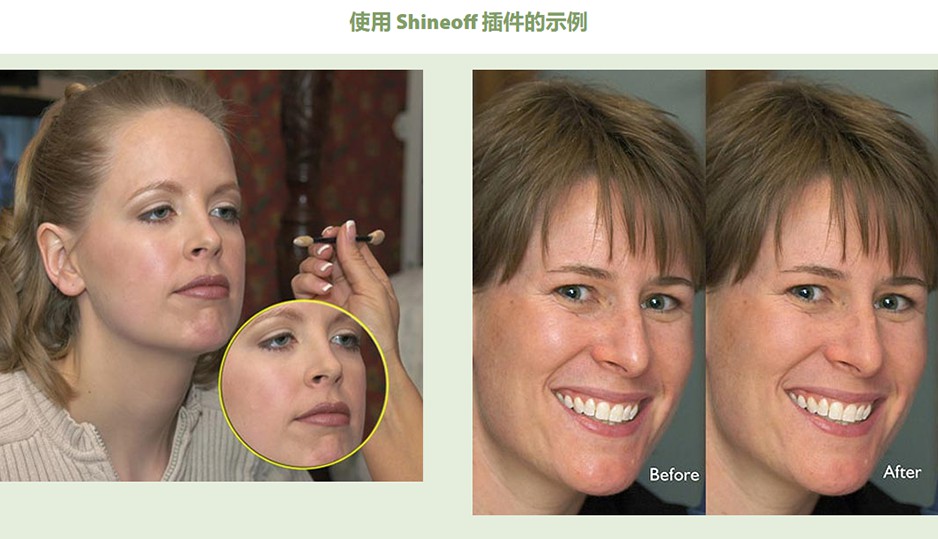 ShineOff 是一款与Adobe Photoshop 兼容的滤镜插件,可自动去除皮肤上的光泽。通常,相机闪光灯的冷白光会在皮肤上产生不自然的光泽。ShineOff 自动将面部和皮肤区域转换为柔和自然的外观。这项正在申请专利的技术不会去除嘴唇的光泽,也不会去除牙齿或眼睛的闪光。在单个图像上运行 ShineOff 或将其用作 Photoshop 动作的一部分,并将其应用于一组图像的批处理模式。ShineOff 插件通过消除闪光灯的过度反射效果来改善肤色!