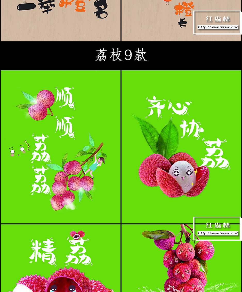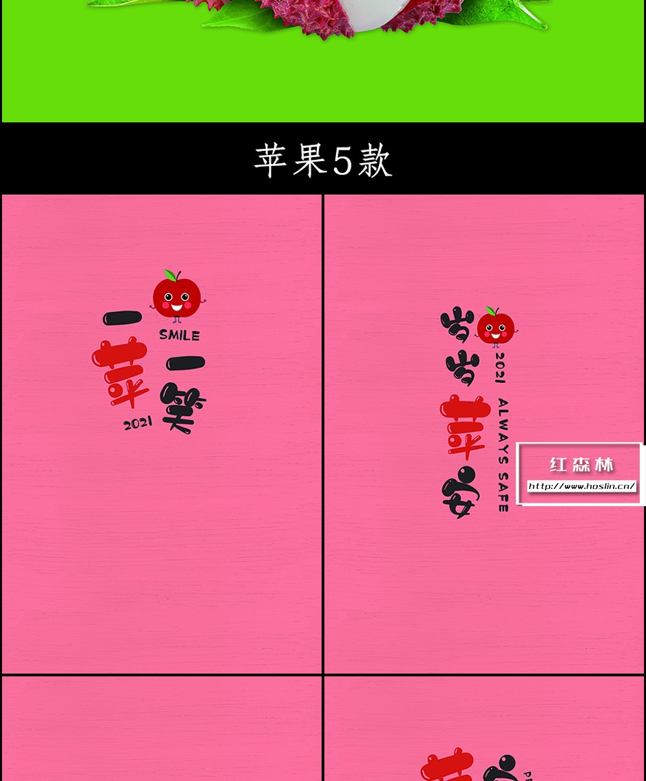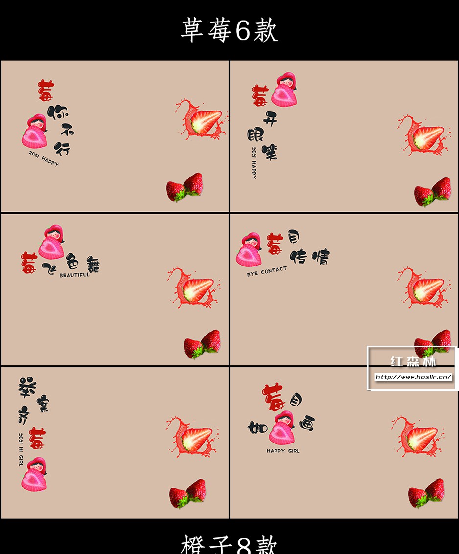 水果谐音儿童卡通背景模板 + PNG素材