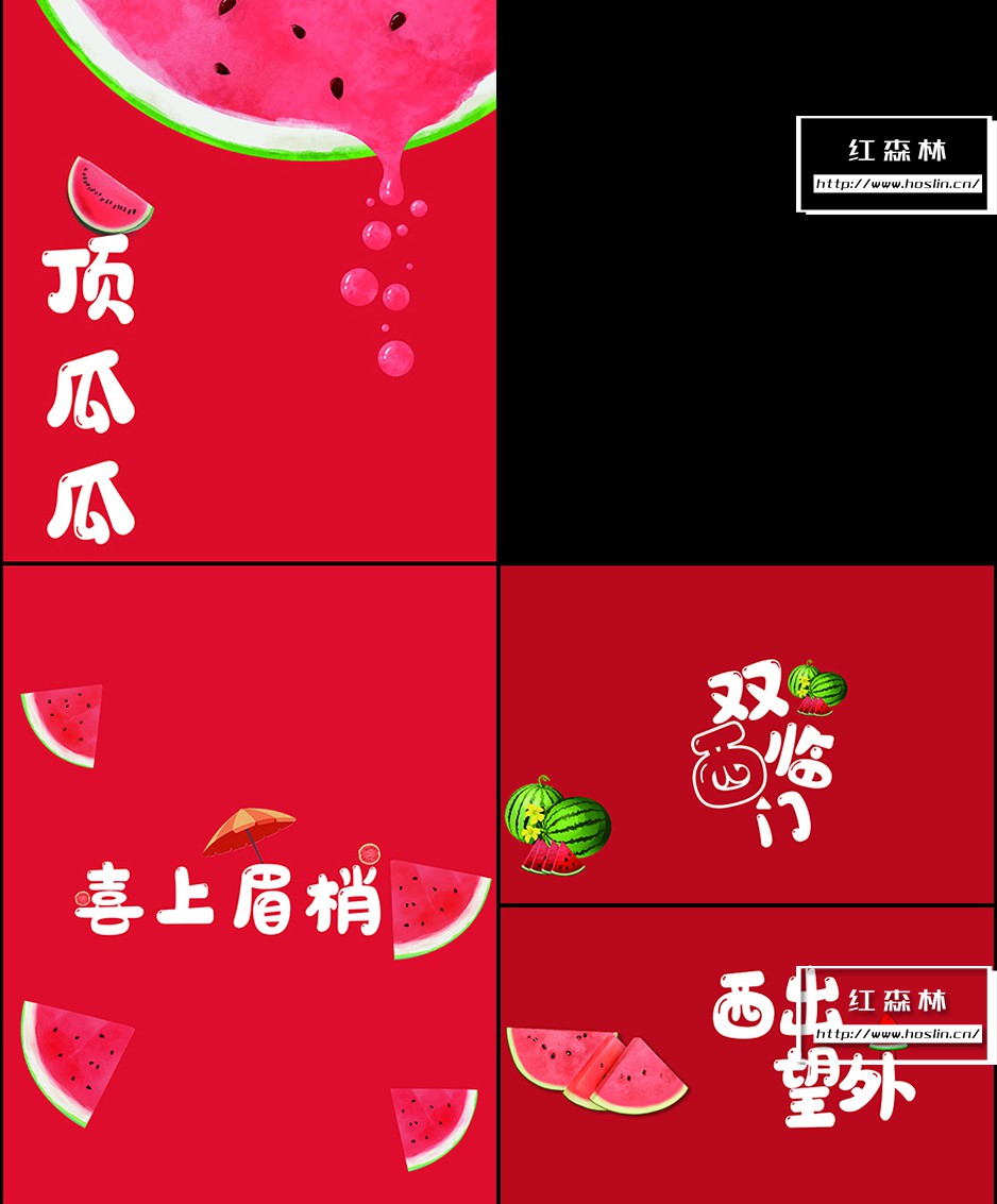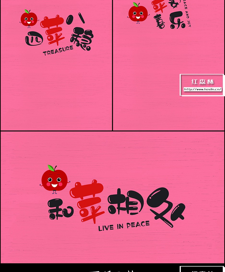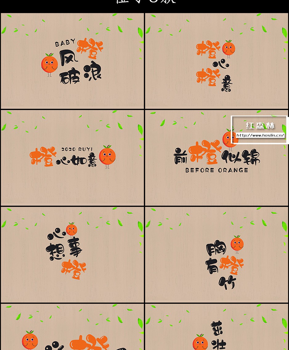水果谐音儿童卡通背景模板 + PNG素材