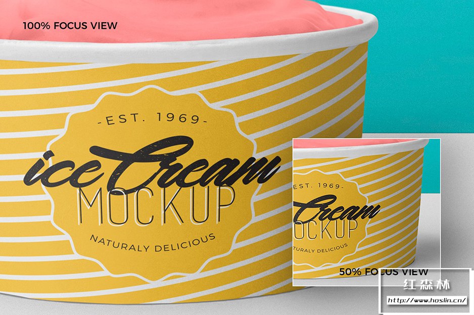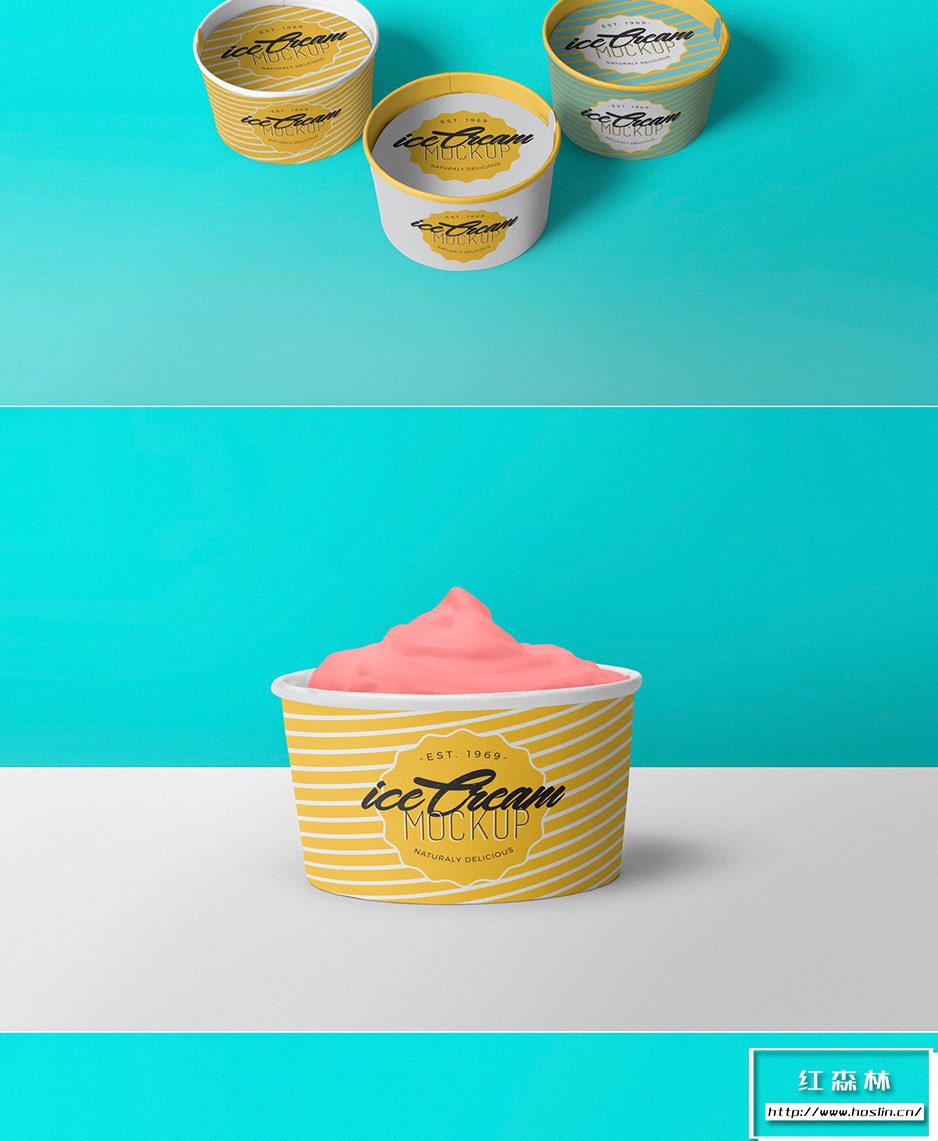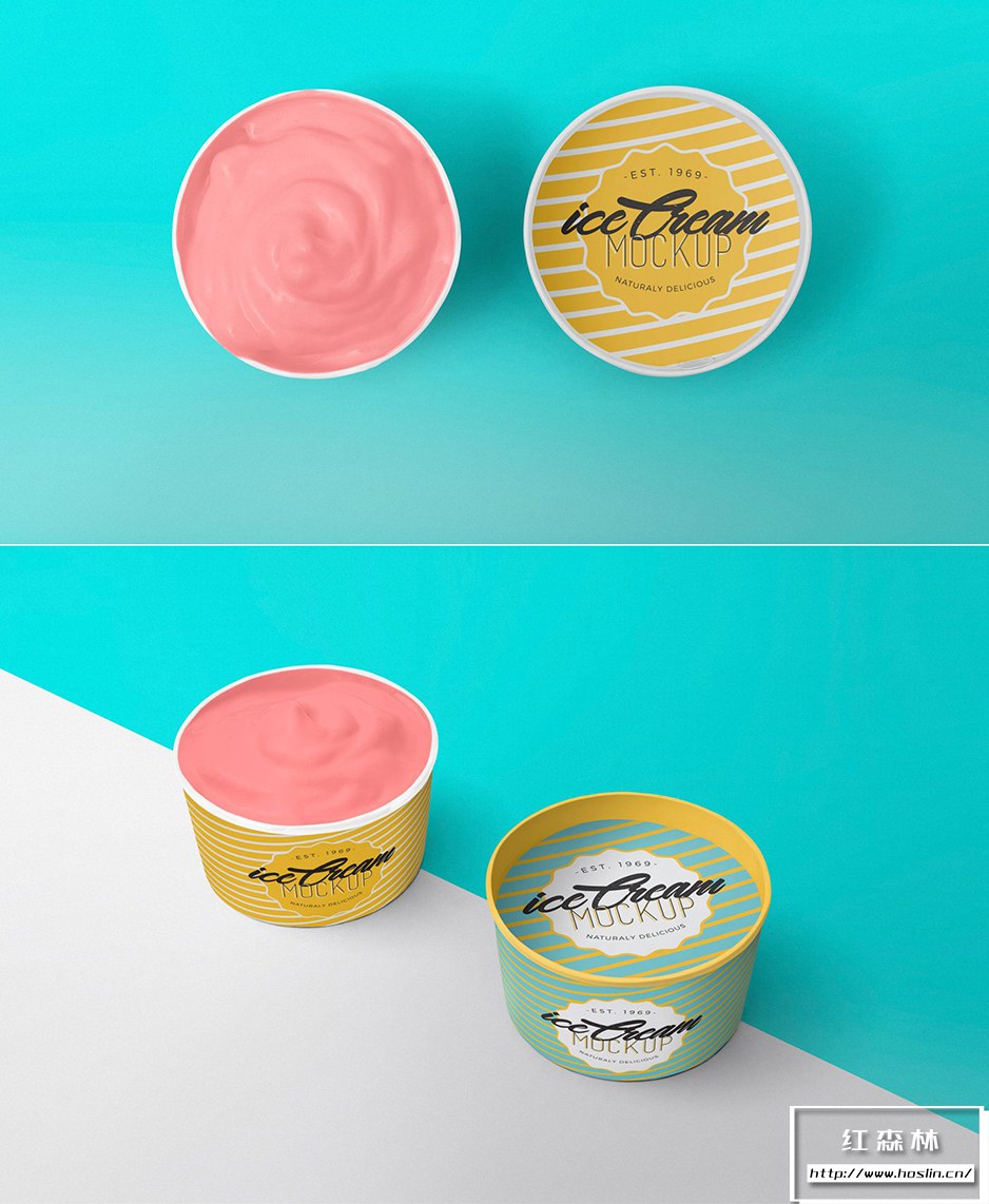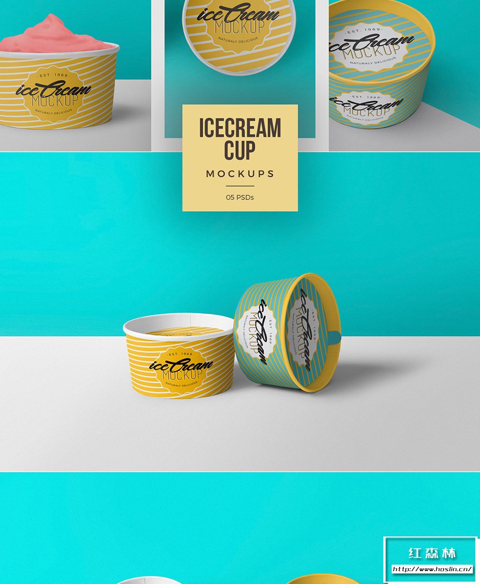 • 5 个美味的冰淇淋杯模型:这些冰淇淋杯模型提供 5 种不同的布置,具有独特的风格和姿势,以吸引人的方式展示您的冰淇淋品牌。您可以使用智能对象功能更改冰淇淋杯及其盖子的设计。您还可以使用其智能图层调整冰淇淋模型的颜色、阴影、效果和背景。