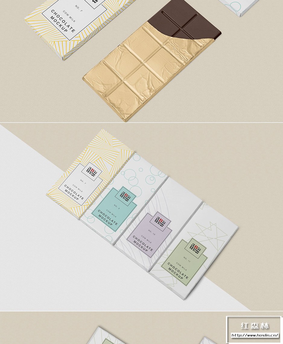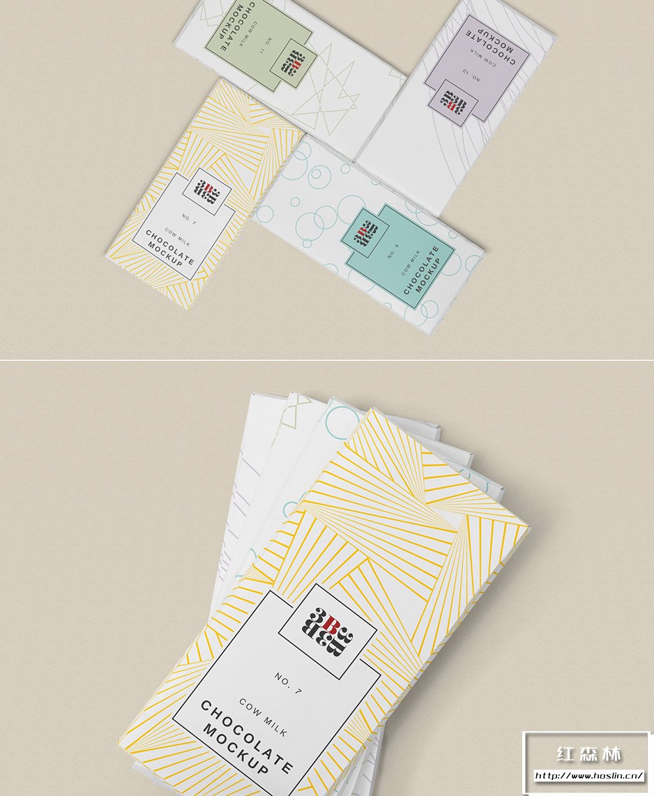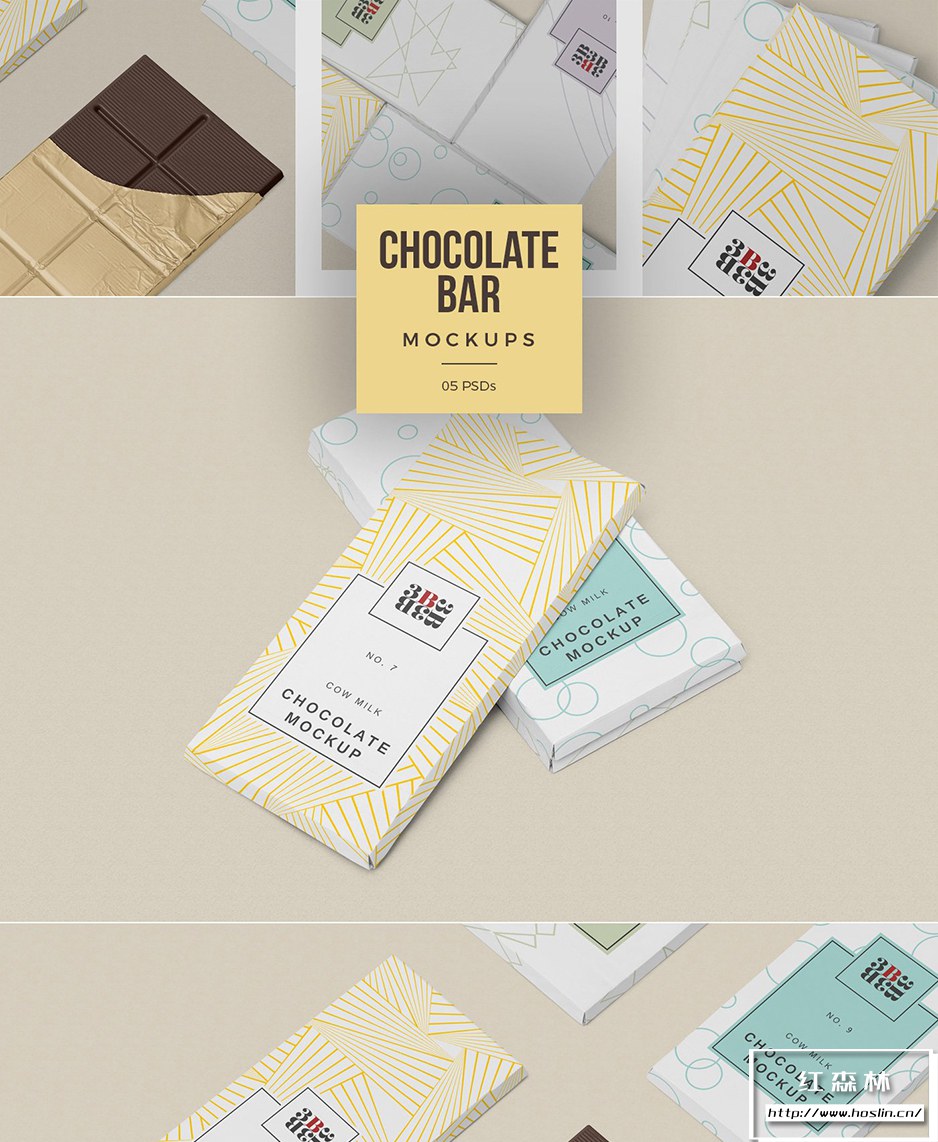 • 5 Cool Chocolate Bar Mockup:完全分层的巧克力棒模型,将帮助设计师制作出高质量的包装设计演示。这些模型包括巧克力包装和巧克力棒的不同布置。您可以单独更改所有包装的设计以及巧克力的颜色。您还可以调整模型的阴影、效果和背景。