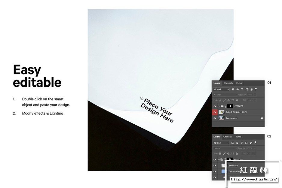 如何编辑:超级简单的编辑!双击智能对象并粘贴您的设计。