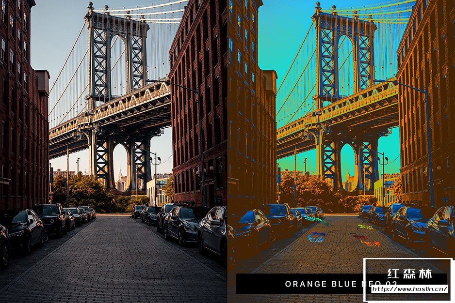 - 3 种橙蓝色预设- 互补的橙色和蓝色外观