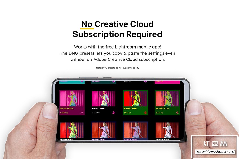 无需订阅 Creative Cloud:您将获得原生和 DNG 移动预设!即使没有订阅,您也可以使用 DNG 预设。如果您是订阅者,请使用本机移动预设解锁不透明度/数量设置。