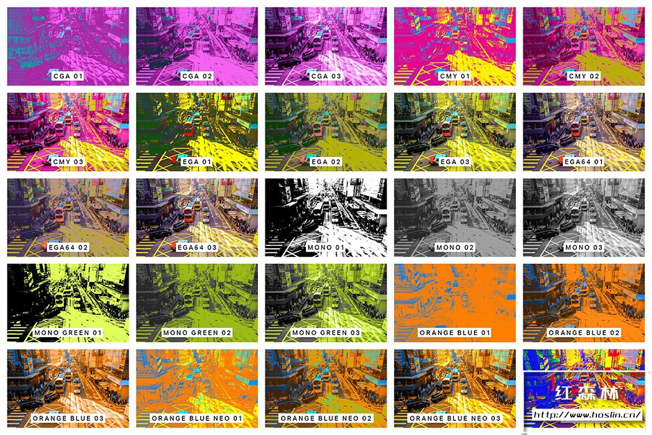 - 3 个 CGA 预设- 紫色和青色赛博朋克风格