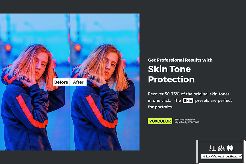 - ✔️ 通过肤色保护获得专业效果(VOXCOLOR 色彩科学)