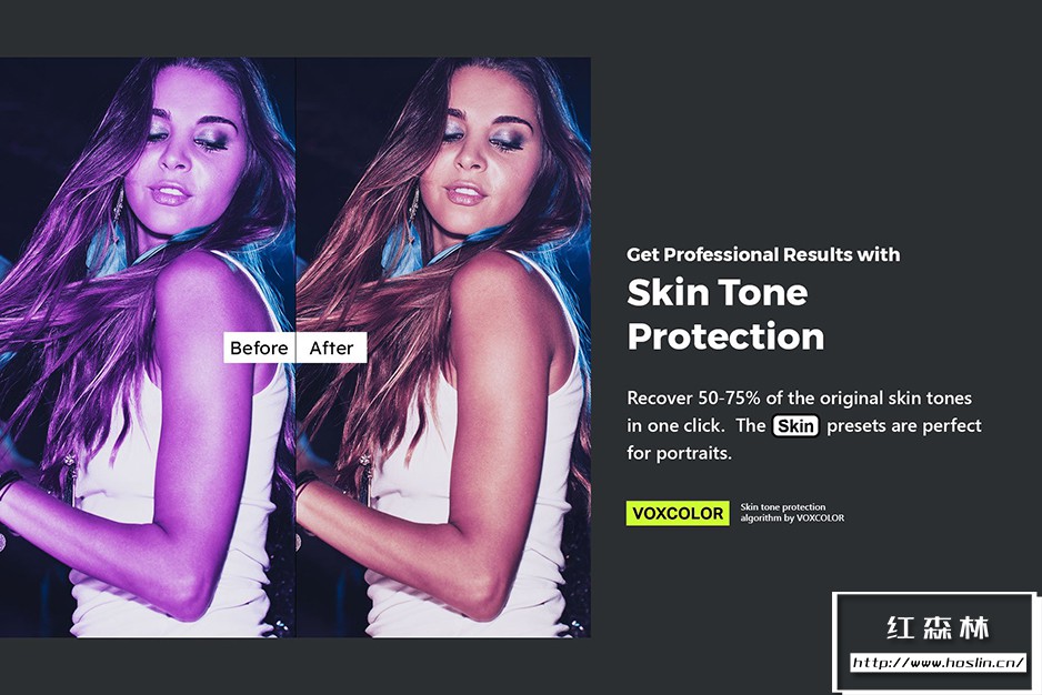 - ✔️ 通过肤色保护获得专业效果(VOXCOLOR 色彩科学)
