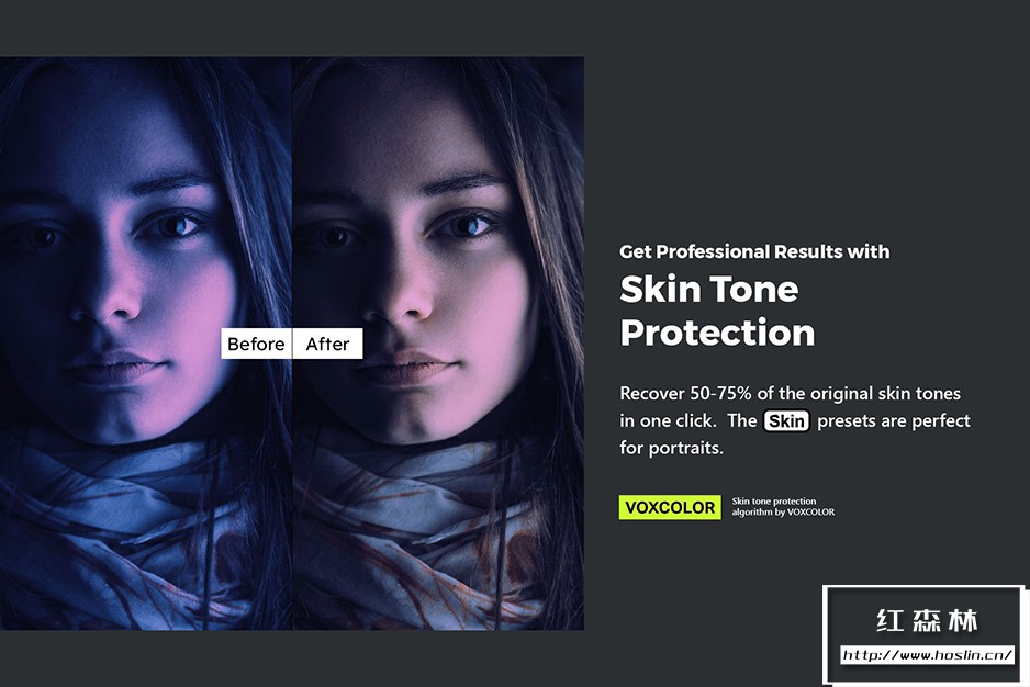 - ✔️ 通过肤色保护获得专业效果(VOXCOLOR 色彩科学)