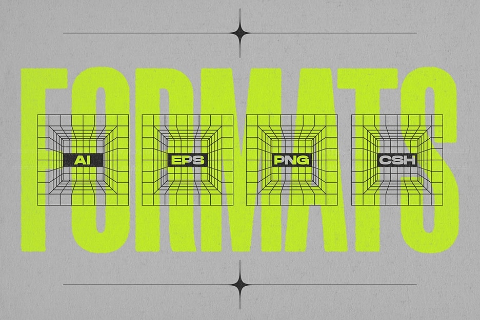 兼容性:PNG 文件可用于支持此格式的任何软件。矢量格式(EPS/AI)与 Illustrator 或 Affinity Designer 兼容。