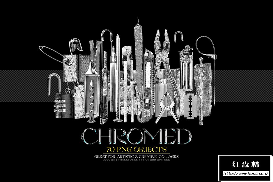 • 70 张复古镀铬元素 (.PNG)