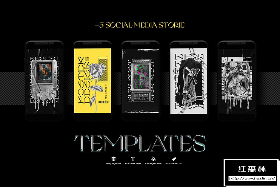 • 5 个适用于 Photoshop 的故事模板,您可以快速使用和开发精彩内容。