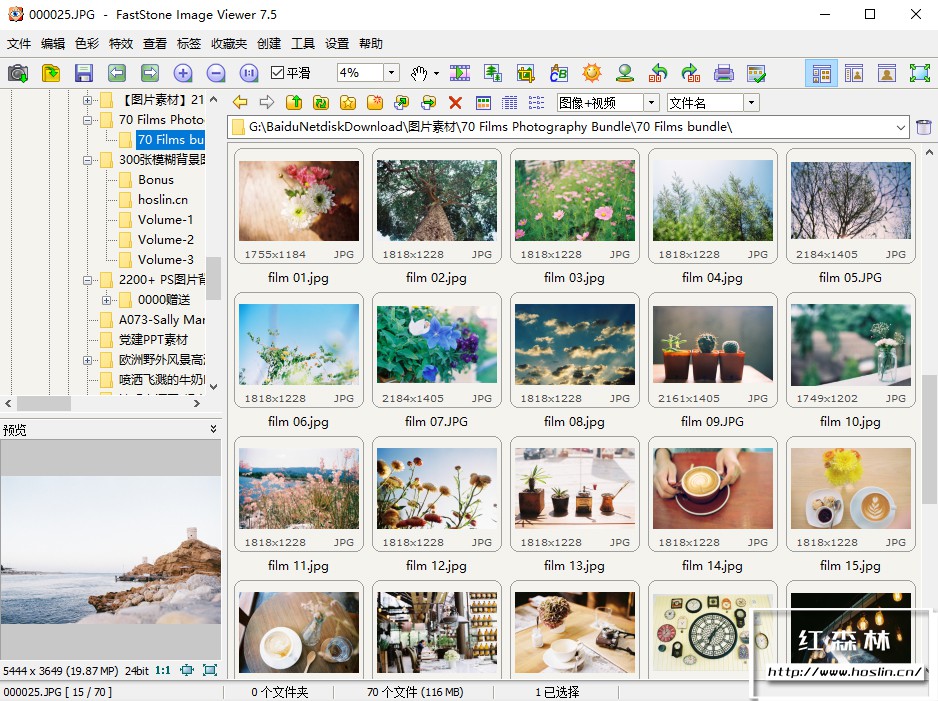 - 具有熟悉的类似 Windows 资源管理器的用户界面的图像浏览器和查看器。