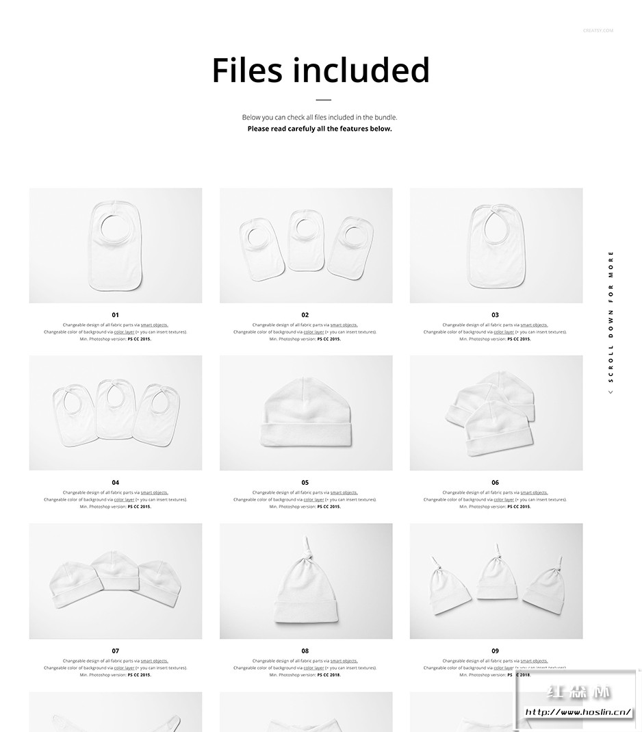 文件仅适用于 Photoshop(最低版本 CC2018,一些模型也适用于 CC2015);包括带有所有模型集链接的 PDF 文件(20 套,73 个模型:.psd 文件:6000×4000 像素,300dpi);文件大小:42G(解压后)