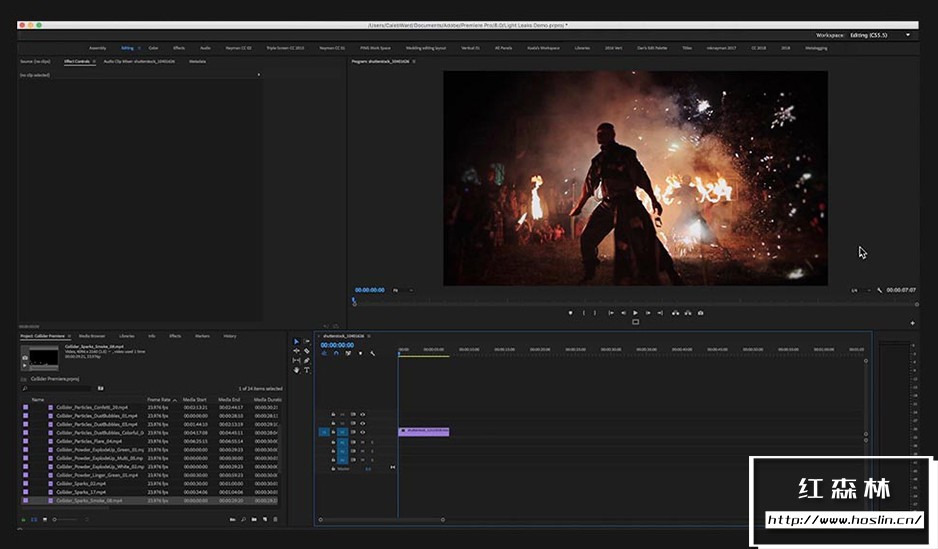 支持的软件有:Final Cut Pro,Final Cut Pro X,Apple Motion,Premiere Pro,After Effects,Nuke,Smoke,Avid,Vegas,Edius 等其他后期视频制作软件。可修改混合模式去黑底透明叠加使用。