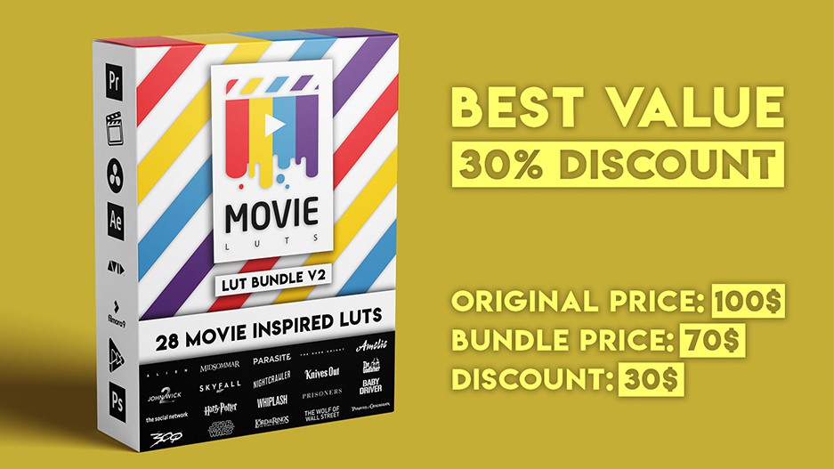 受28部好莱坞电影大片启发,使用Movie LUTs Bundle V2 转换您的视频并获得好莱坞电影的色彩外观。