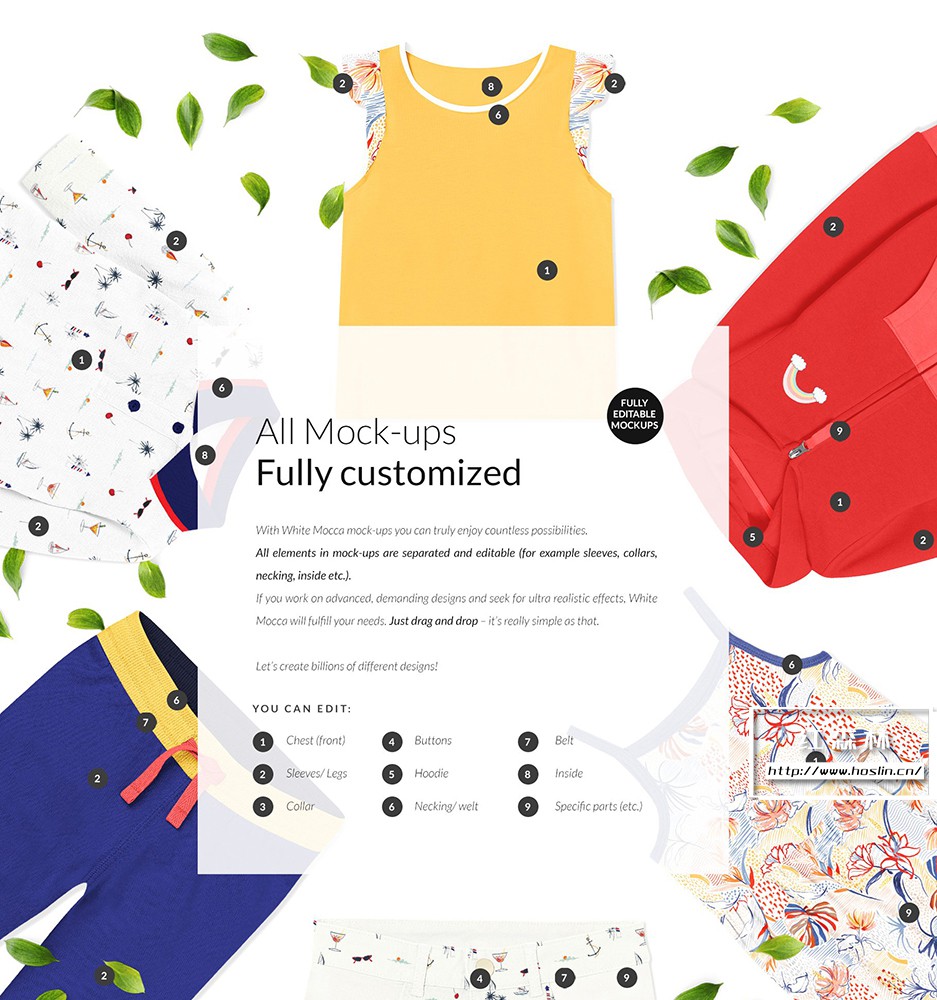 所有模型完全定制使用白色摩卡模型,您可以真正享受无数的可能性。模型中的所有元素都是分开的和可编辑的(例如袖子、领子、领口、内部等)。如果您从事高级、苛刻的设计并寻求超逼真的效果,White Mocca 将满足您的需求。只需拖放 – 就这么简单。