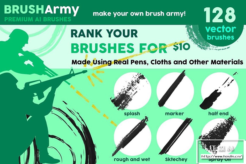 Vector Brush SET BRUSHarmy 包 125 多种笔刷,专为创意市场用户设计。该笔刷包含120多个惊人的画笔束,可以将您的简单图稿变成您喜欢展示的艺术设计。