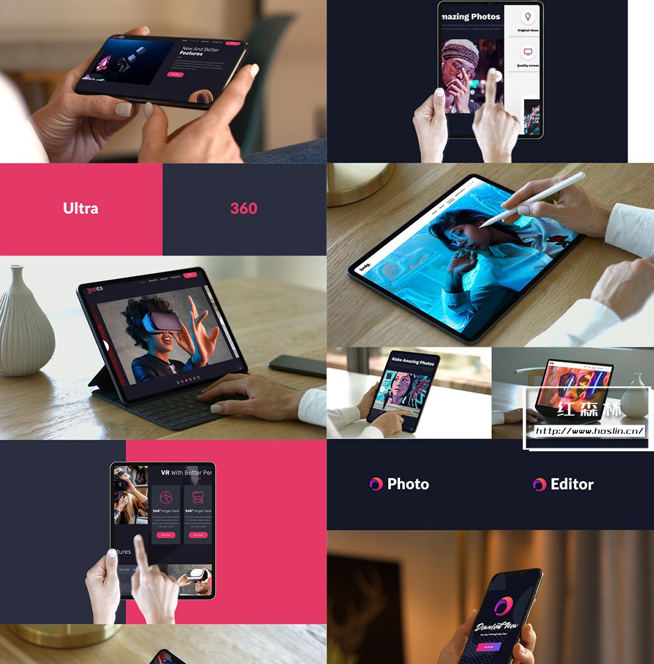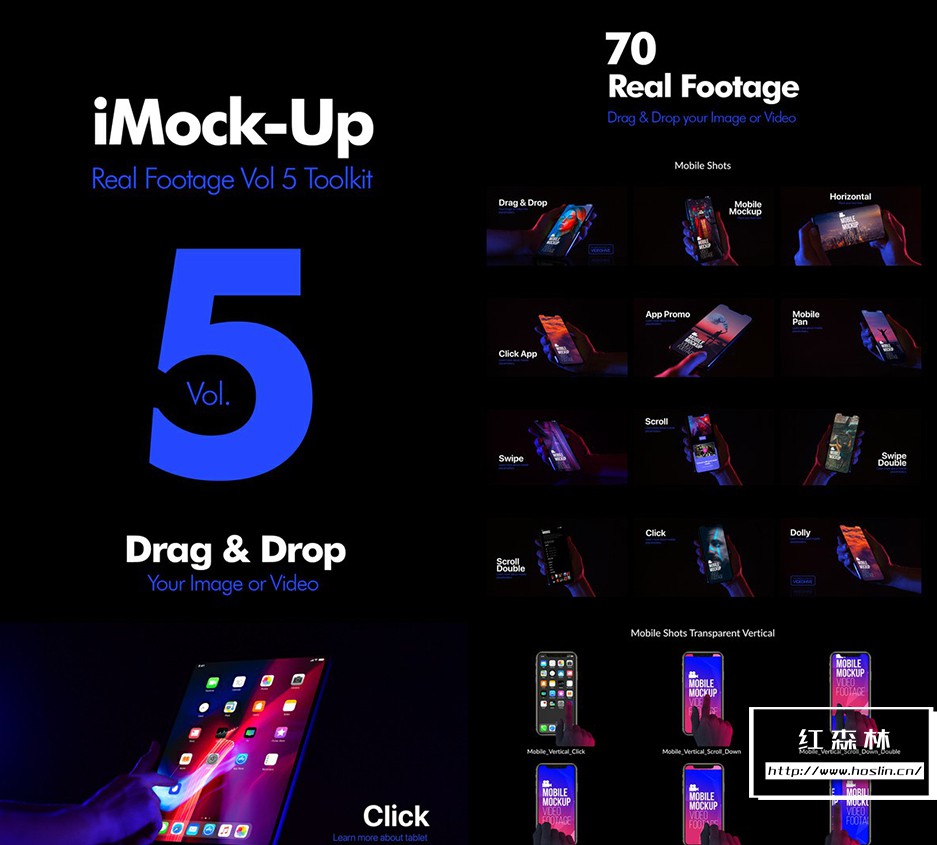 iMock-Up Real Footage Vol 5 工具包:使用这些响应式设备电影镜头宣传您的网站和应用程序。包含笔记本电脑、平板电脑和手机的 70 多个模拟镜头的集合。设备屏幕的图片视频素材都可以自己替换,会自动跟着手势生成动画,无需自己做另外的修改,使用非常简单。第五季模板详情:VH24813802