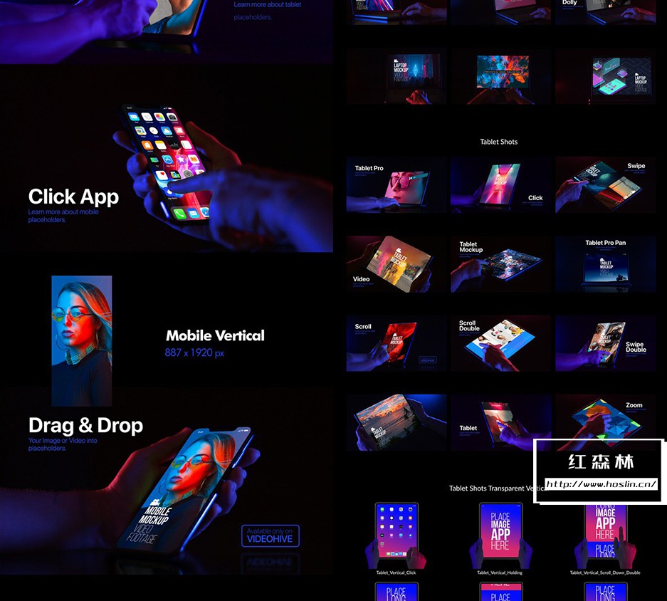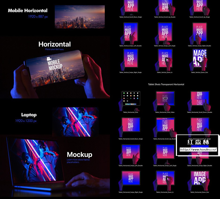 iMock-Up Real Footage Vol 1 工具包,包含 21 个模拟镜头(已经抠像和跟踪 – 直接使用)和 12 个笔记本电脑、平板电脑和手机的操作手势动画素材库。另有5种颜色预设,全高清分辨率(1920×1080)无需插件,含教程。第一季模板详情:VH9519387