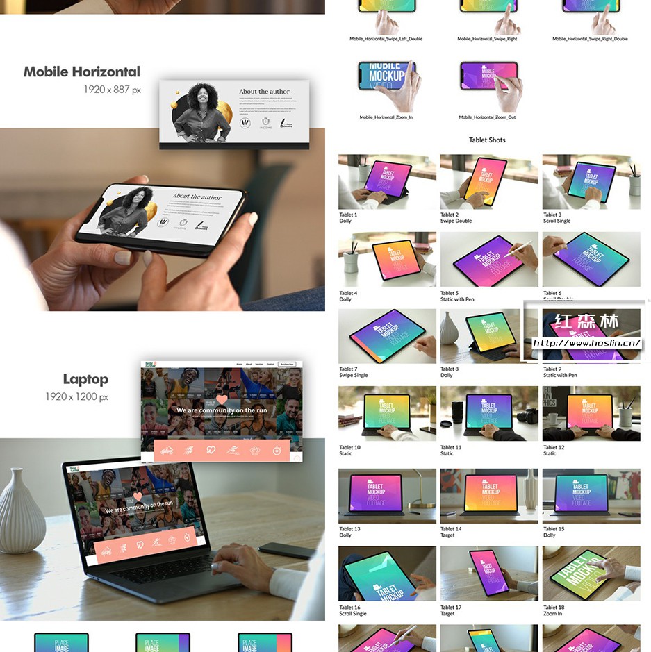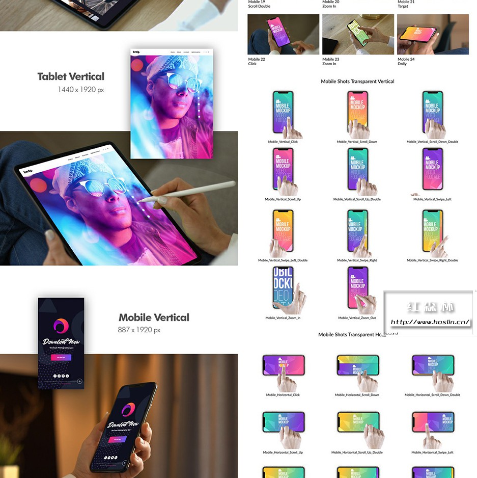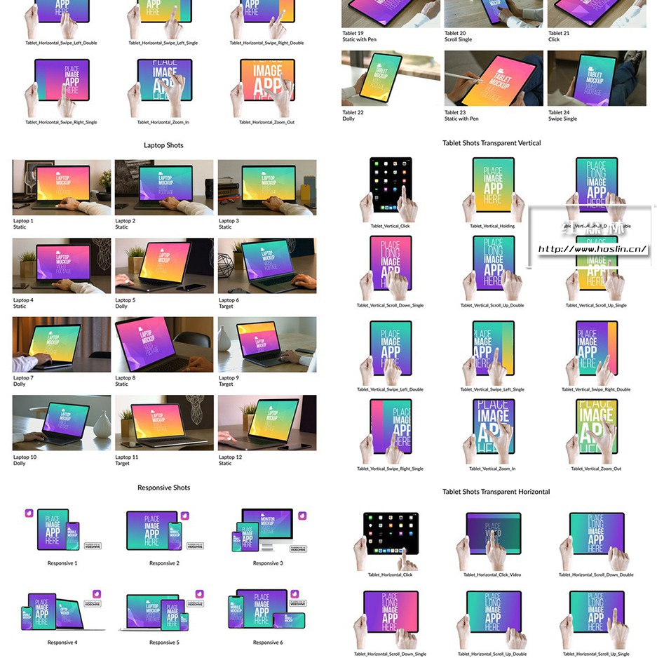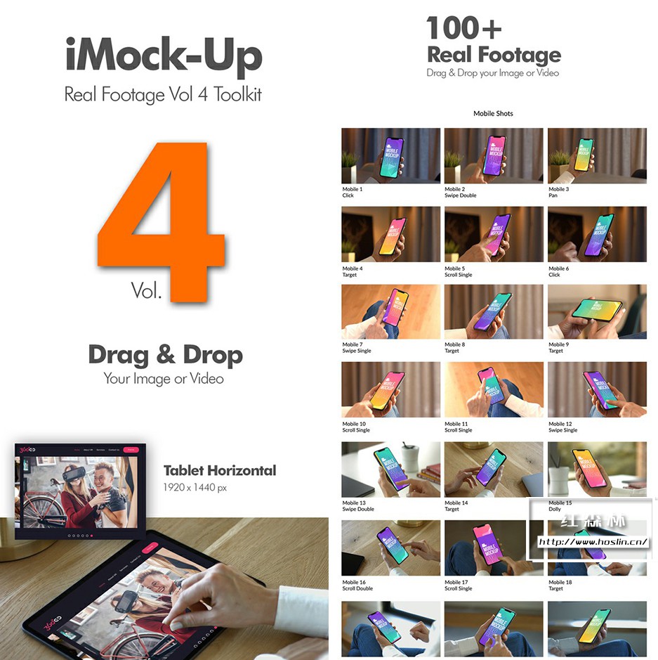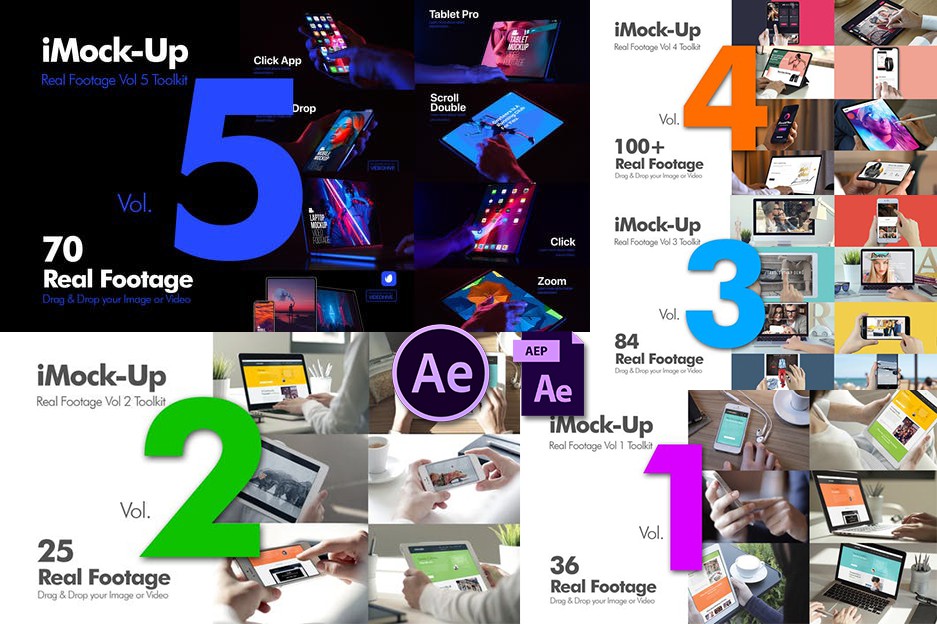 iMock-Up Real Footage Vol 2 工具包,包含 19 个模拟镜头(已经抠像和跟踪 – 直接使用)和 6 个笔记本电脑、平板电脑和手机的操作手势动画素材库。另有5种颜色预设,全高清分辨率(1920×1080)无需插件,含教程。第二季模板详情:VH9778156