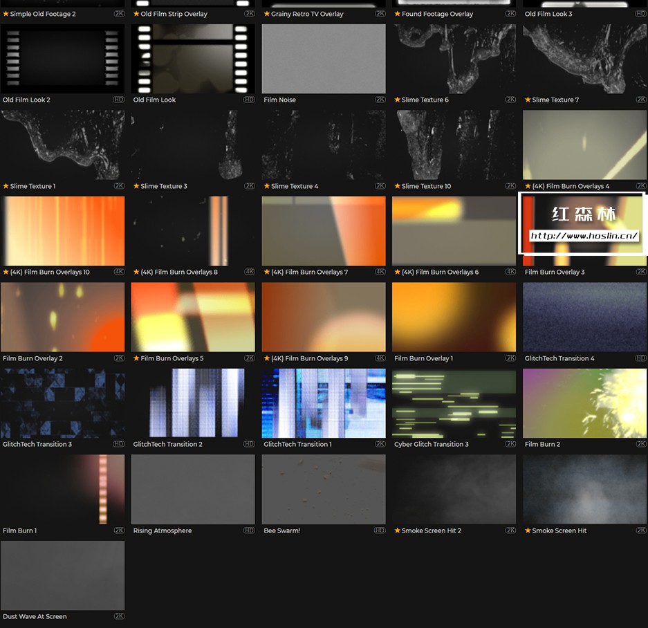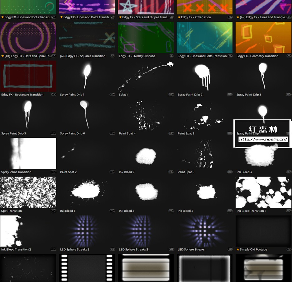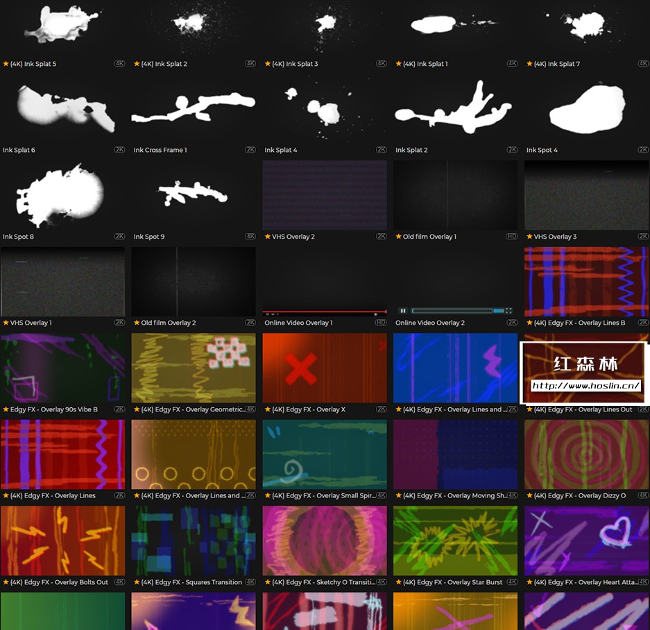 120多个4K高分辨率VFX视频叠加特效视频素材,包含多种特效风格,复古老电影胶片,前卫抽象,赛博朋克,镜头漏光光效,水墨液体流动等。在音乐视频、宣传视频、体育视频或任何需要能量的内容中使用它们,这些动态图形是预先键控/预抠像的,包含 Alpha 通道,直接拖动到时间线上即可使用。