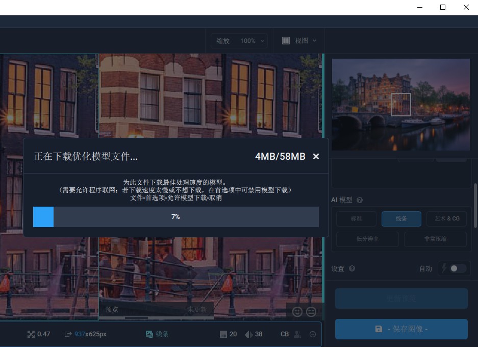 业界广受好评的照片放大软件Topaz Gigapixel AI,我们在使用时选择不同模型时软件会需要在线下载(如下图1),但如果您网络不佳或别的原因,会花费不少时间。同时根据计算机性能不同,更新预览进行AI计算时也会比较耗时。使用这套离线模型包后,就无需开启模型下载(下图2),且AI计算速度会成倍增加,测试放大一张500像素图片到3000像素仅需两秒时间。