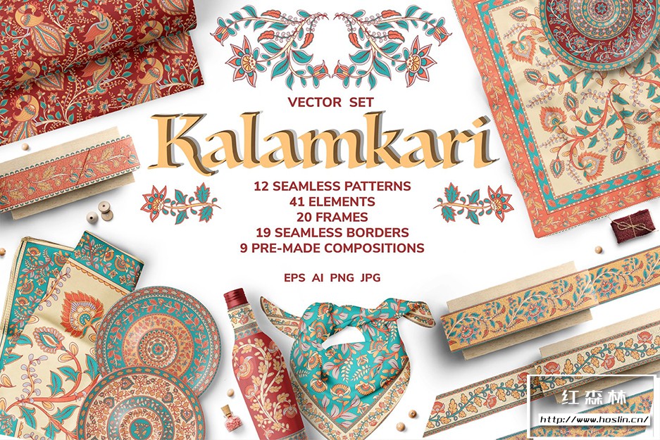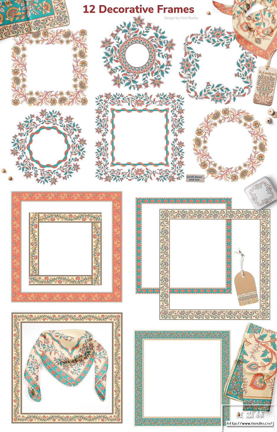 在“KALAMKARI”系列中,我展示了印度风格的图案、装饰品、图案、边框、框架。它们可用于服装、配饰、家用纺织品的装饰……